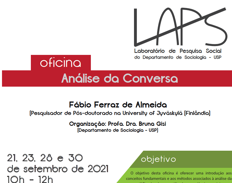 As Conversation Analysis is increasingly taken up by researchers across the world, we are seeing efforts to bring the approach to their wider local communities. There are several initiatives in Brazil, and I’m delighted that Fabio Ferraz de Almeida, currently working in Finland, has sent in this report of an inaugural workshop in Sao Paulo.
